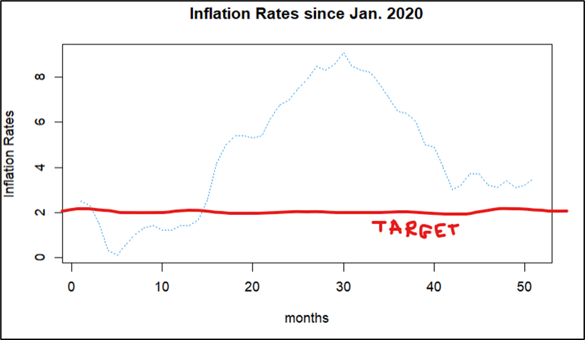 WHAT AM I LOOKING AT? The black line above is where inflation has been, and the blue line at the right-hand side of the chart is our 6-month forecast, based on the “stuff” I mentioned earlier. So, if this is correct, inflation may go higher yet before retreating once again. Wait, before you get nervous, please consider the following. First, the Fed economists are using almost the exact same method as me and using the exact same software, SO THEY ALREADY KNOW THIS. That is probably why they are not rushing to cut rates. There is more. They also see that the rates will come down after peaking in a few months, AND if you remember from the chart above, seasonality suggests that rates will moderate even more in final months of the year. The Fed knows this as well, which is why FOMC members are not panicking. Finally, let’s talk about that “random” panel from above. That shows us how much of the prior observations that could not be explained with trend and seasonality. You can see how it recently increased, but more importantly, how it is around the average since 2020, so the amount of randomness, or the likelihood of a “miss” by economists is kind of around where it has been for the most part (sorry, for the not-so-scholarly description, but I don’t want to get caught in the weeds). If you look back at the chart you can see that the randomness suggests that those projections can get as high as +5%… … … but also as low as +2% in the coming months. SO, please take this all with a grain of salt, because the Fed, in its own words, is “data dependent,” which means it will react to the actual numbers that are released, and not rely on… forecasts. At least you know what those smart folks are carrying around in their briefcases. Class is dismissed.