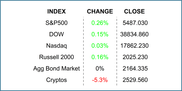 Stocks rose on Tuesday as slower-than-expected Retails Sales increased hopes for sooner rate cuts. Without a strong showing from Autos, Retail Sales came in with an anemic print which included a downward revision of the prior month.