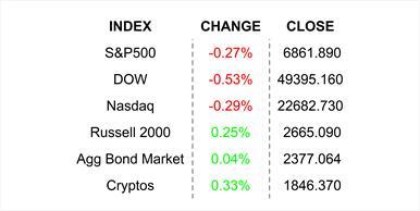 Stocks took it on the chin yesterday as fears collided. Worries over a potential US Strike on Iran set the stage sending crude and gold higher. Then came the private credit investment fear discussed above. ☝️🙃 Throw in a bit of ongoing discomfort about today’s important economic releases, and you get a pullback in the S&P and Dow after a few positive sessions. No free lunch–not yesterday.