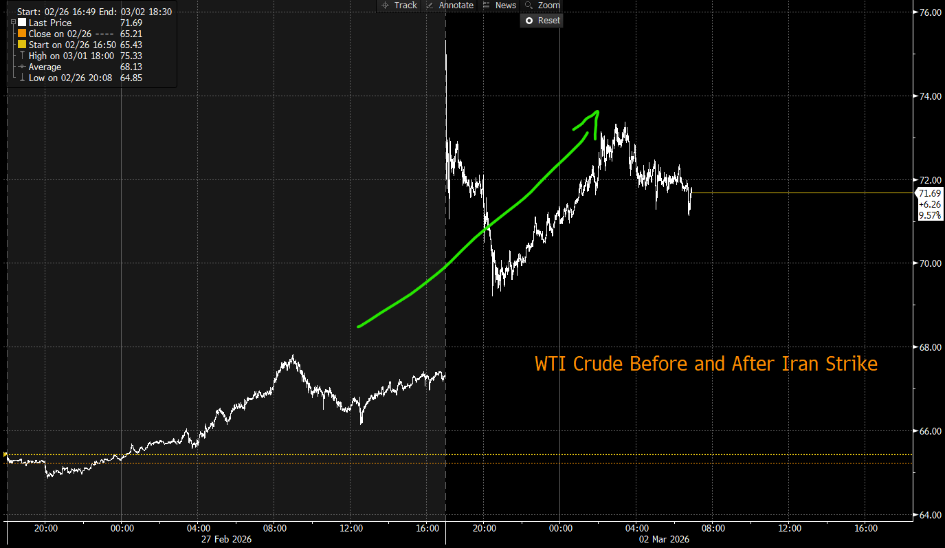 Over the weekend, those consequences became very real in the Middle East. What began as rising probabilities and positioning last week turned into coordinated US strikes on Iranian military and strategic targets. This was not a pinprick operation. It was broader in scope and more forceful than last year’s Operation Midnight Hammer. The targets were meaningful. The messaging was deliberate. And the response risk is real. Not unexpectedly, Iranian officials have vowed retaliation, and that retaliation is playing out in real time as the country has launched a massive barrage of missile and drone strikes across the region.
