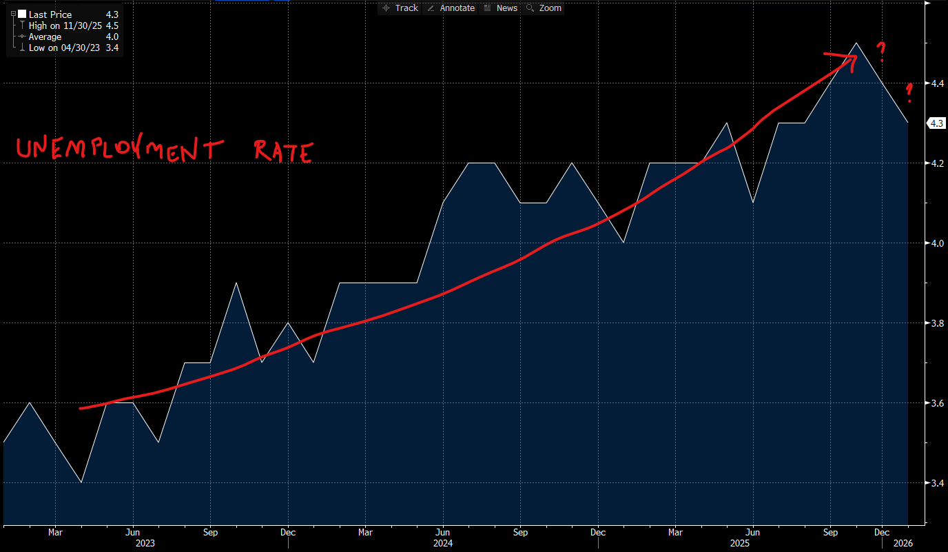 I have been writing a lot about the labor market which I have assessed to be sluggish. The Fed disagrees and it has said so explicitly in its last policy statement, believing it to be stable. Stable is an interesting word choice. I have known patients to be listed as “stable”... … on life support–not getting markedly worse, but already in a pretty bad state. Now, I would hardly say that the US labor market is on life-support, but it is far from a picture of perfect health either. We just got January’s employment situation numbers from the Bureau of Labor Statistics (BLS) yesterday. A few days late, but it could have been worse. Anyway the headline figures read like a win for the economy. The U-3 Unemployment Rate ticked lower for a second straight month to 4.3% and 130,000 new Non-farm jobs were added. That was quite a bit higher than economists were expecting and the prior month’s downward-revised print of 48,000. Markets were unsure of what to make of it. Was it good for the economy which should–in theory at least–be good for your stocks? Forget that theory stuff, I will tell you that companies thrive in healthy economies. Can a company do well in a failing economy? Some can, but the best results are always achieved when the economic conditions are right–as in healthy. Now, the flipside to the story is that the Fed, using the topline, healthy print, can now ease back in its government-issued deskchair. The labor market, based on the past two unemployment rate prints, appears to be stable. This allows FOMC members to worry about elevated inflation. Elevated but improving; I guess one could say, inflation is… er, stable. 😂 However there are enough FOMC members who are happy to offer up their hawkish views in the shadow of yesterday’s print. Further, the presumed next chair Kevin Warsh is a wildcard. He has said that he thinks rates could go lower, but his past behavior and writings suggest otherwise. No telling what he will do after he arranges his kids’ pictures on his desk in the corner office at Fed HQ. Also, bear in mind that he is just one of 12 votes, and there is still a respectable gaggle of hawks that may not favor raising rates, but are certainly in no rush to cut them either–and they have all said as much as well.