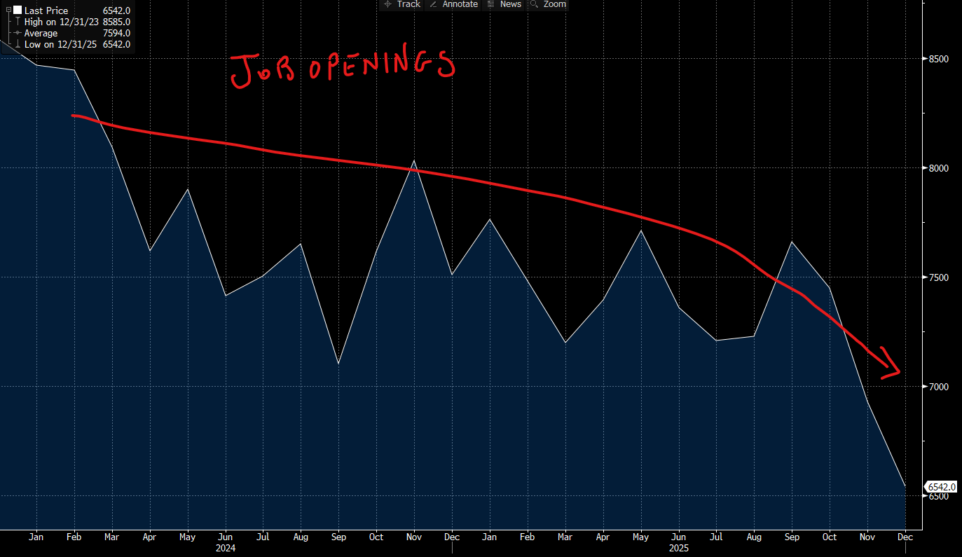 Artificial intelligence is not just another productivity enhancement. It is a reordering of how goods are manufactured and services are provided. It is showing up quietly right now, in hesitancy. In delayed hiring decisions. In job descriptions that are written but not filled. In corporate boardrooms where the conversation is no longer “how many people do we need?” but “how many people can we avoid hiring if we deploy this correctly?” That shift does not immediately show up in a Nonfarm Payroll number from last month–a number that will likely be revised a year from now anyway. 🫤