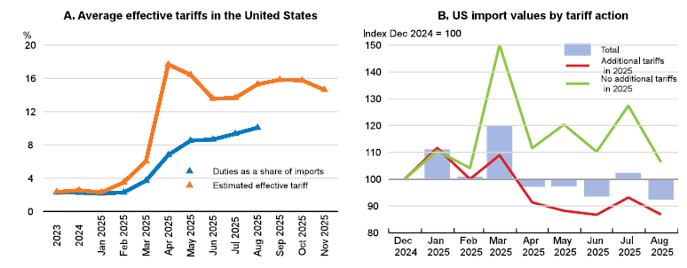 What gives, indeed. According to the OECD, quite a lot–and almost all of it runs counter to the doom-and-gloom narrative we all expected back in April. Despite the shock-and-awe tariff barrage, the economy has been doing something deeply inconvenient for the apocalypse set: it has been refusing to die. And the OECD spells out why. The first reason is almost embarrassingly simple. The full force of the tariffs hasn’t actually hit the economy yet. The report notes that while the legislated effective tariff rate shot up from 2.5% to 14%, the observed tariff rate–you know, what’s really being collected at the border–was only 10.1% through August. The difference, as the OECD explains, comes down to logistics, timing, and some corporate ingenuity. Firms front-loaded imports early in the year, filling warehouses before the new tariffs kicked in. They also had enough margin cushion to absorb some of the higher costs instead of passing them fully on to consumers. And because of how customs law works, anything already in transit when the tariffs were announced got exempted. In other words, some of the tariff “bombs” were duds on impact, not because the policy wasn’t real, but because reality doesn’t move as quickly as… well, political theater.